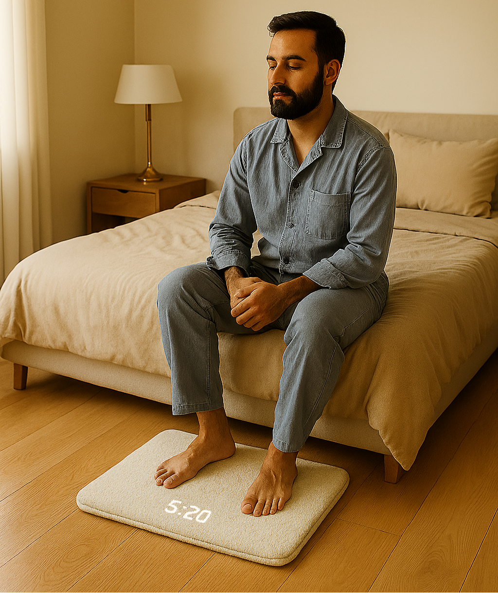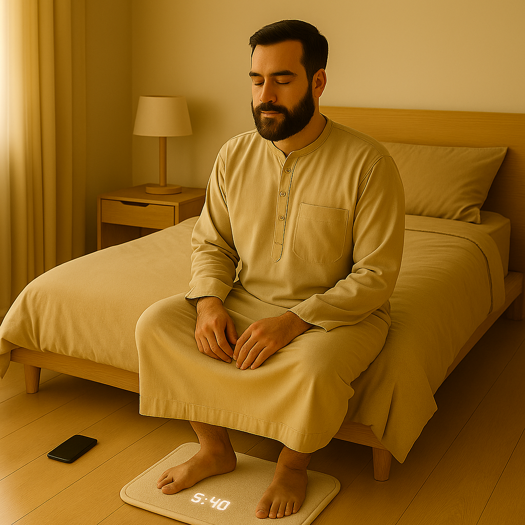 Le tapis-réveil s'éteint que lorsque tes deux pieds sont dessus… et là, tu es déjà debout pour Fajr.