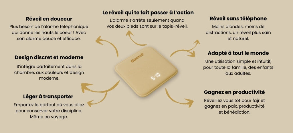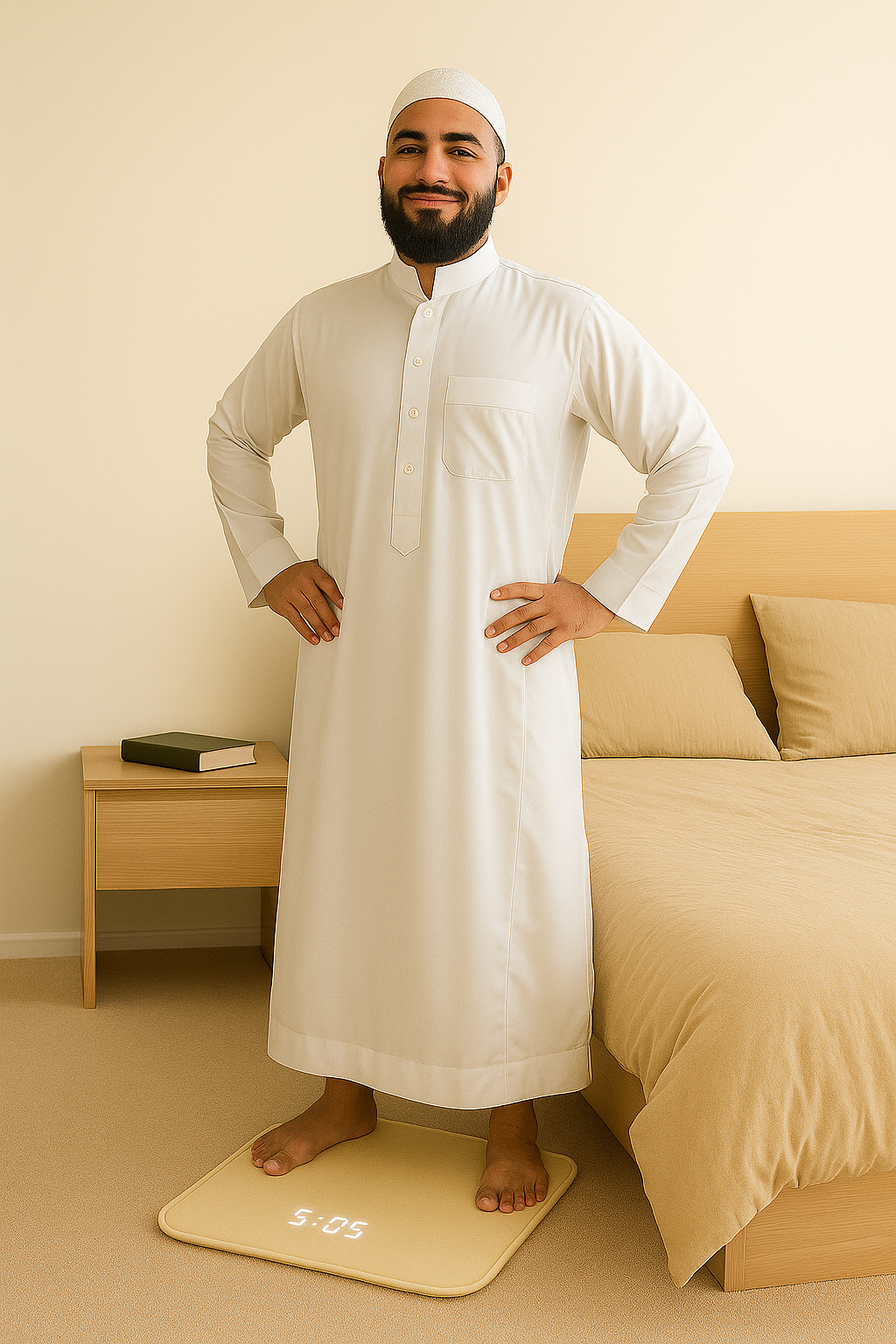 Le tapis-réveil s'éteint que lorsque tes deux pieds sont dessus… et là, tu es déjà debout pour Fajr.